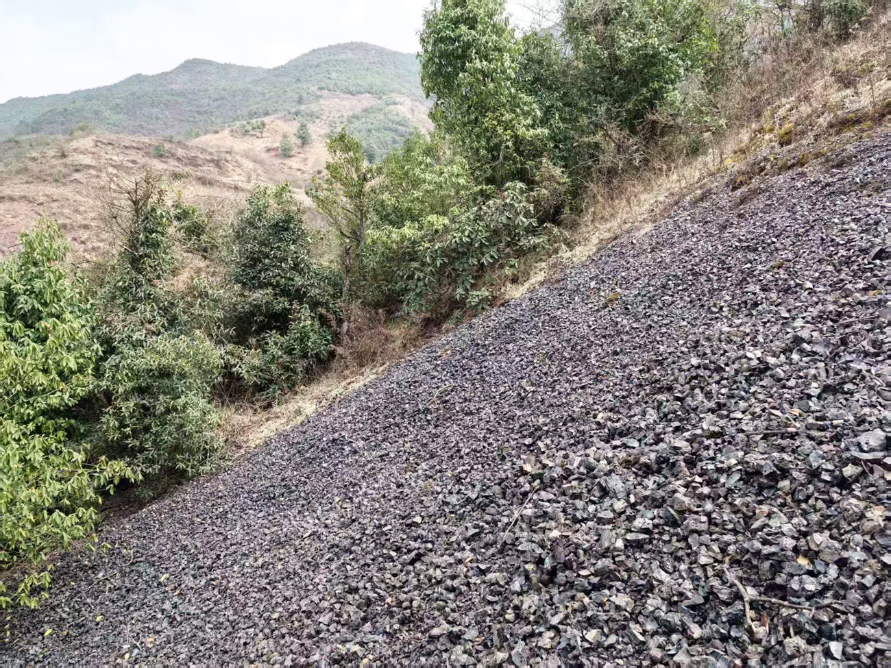 我们从牛街进入哈喇河,一路下坡,浓雾逐渐散去,我们庆幸所选道路的正确。到了陈家沟,收拾好考察工具,循着大致方向徒步前行,经过一个多小时,我们终于抵达目的地——火烧坪。当那片上万方的矿渣出现在我们眼前时,所有的疲惫与忐忑瞬间消散,取而代之的是难以言喻的震撼。层层叠叠的矿渣,在春日的阳光下泛着锃亮的光,沿着西凉山与哈喇河的山腰绵延数公顷,仿佛一片沉睡的山峦,无声诉说着当年采铜时期的鼎盛。我们蹲下身,小心翼翼地触摸着那些微热的矿渣,指尖能清晰感受到岁月的厚重,每一粒矿渣,都曾在千度高温的炉火中淬炼,都曾见证过铜水翻涌的滚烫,都曾听过矿工们的号子声与匠人们的呐喊声。考察的两位老师仔细挑选着具有代表性的炉渣样本,我则负责将这些样本妥善收好,背在身上,不知不觉间,背上的炉渣已重达七八公斤,沉甸甸的分量,像是承载着哈喇河百年的矿业记忆。