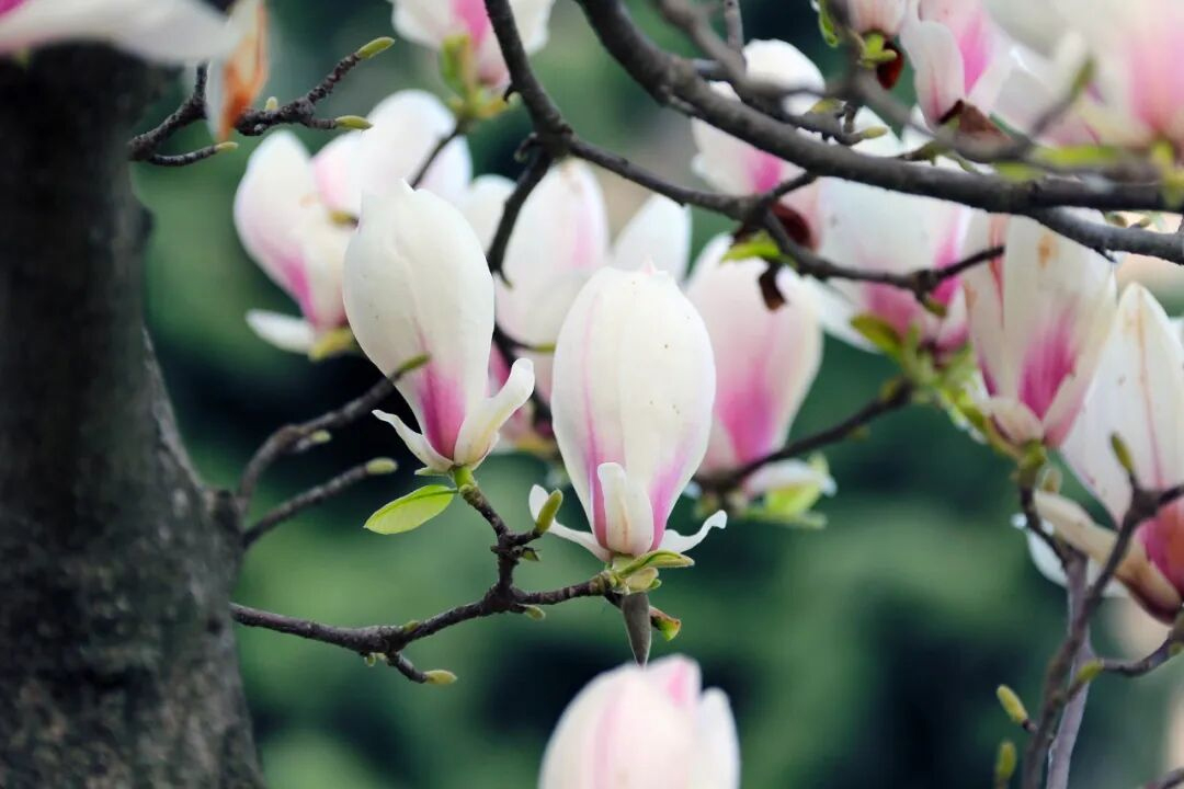 绰约新妆玉有辉,素娥千队雪成围。仲春时节,行至威宁五里岗街道工业五路,道路两旁玉兰正盛放,如积雪压枝,似朝霞映日。