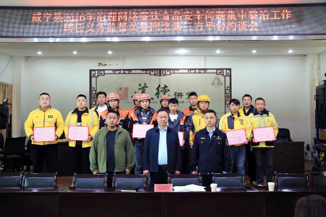 当天上午,在聘任仪式现场,威宁自治县市场监督管理局为自治县人大代表、政协委员及外卖骑手代表颁发聘书。这支新组建的义务监督员队伍,将作为市场监管的“千里眼”与“顺风耳”,弥补行政执法监管力量不足、存在盲区的短板。