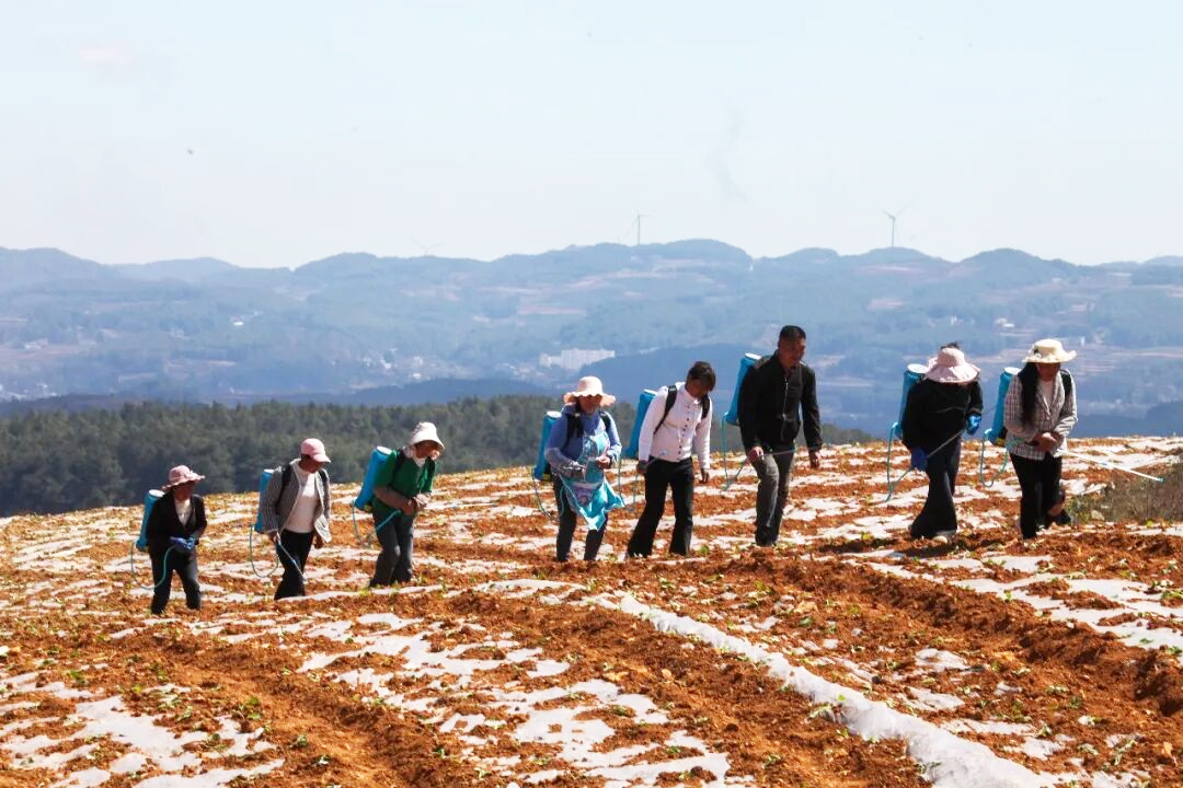 务工群众正忙着浇水定根