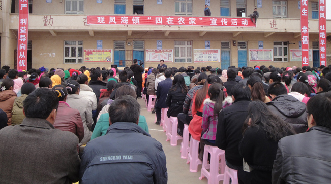 ▲近日,观风海镇举行了“五心教育”、“人口和计生”、“四在农家”的宣传教育活动。图为宣传教育活动现场。 (王宏 摄)