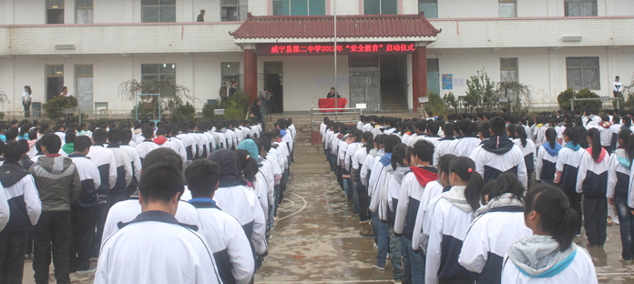 ▲3月26日是第17个全国中小学生安全教育日,威宁二中组织开展了安全宣传教育活动。威昭派出所、草海铁路派出所等单位参加活动并分别作法制教育、爱路护路宣传教育讲座。活动还演出了小品、相声等文艺节目表演,有效提高了广大师生安全意识。该校3200多名学生参加了本次活动。图为安全教育活动现场。 (本报记者 李邦银)
