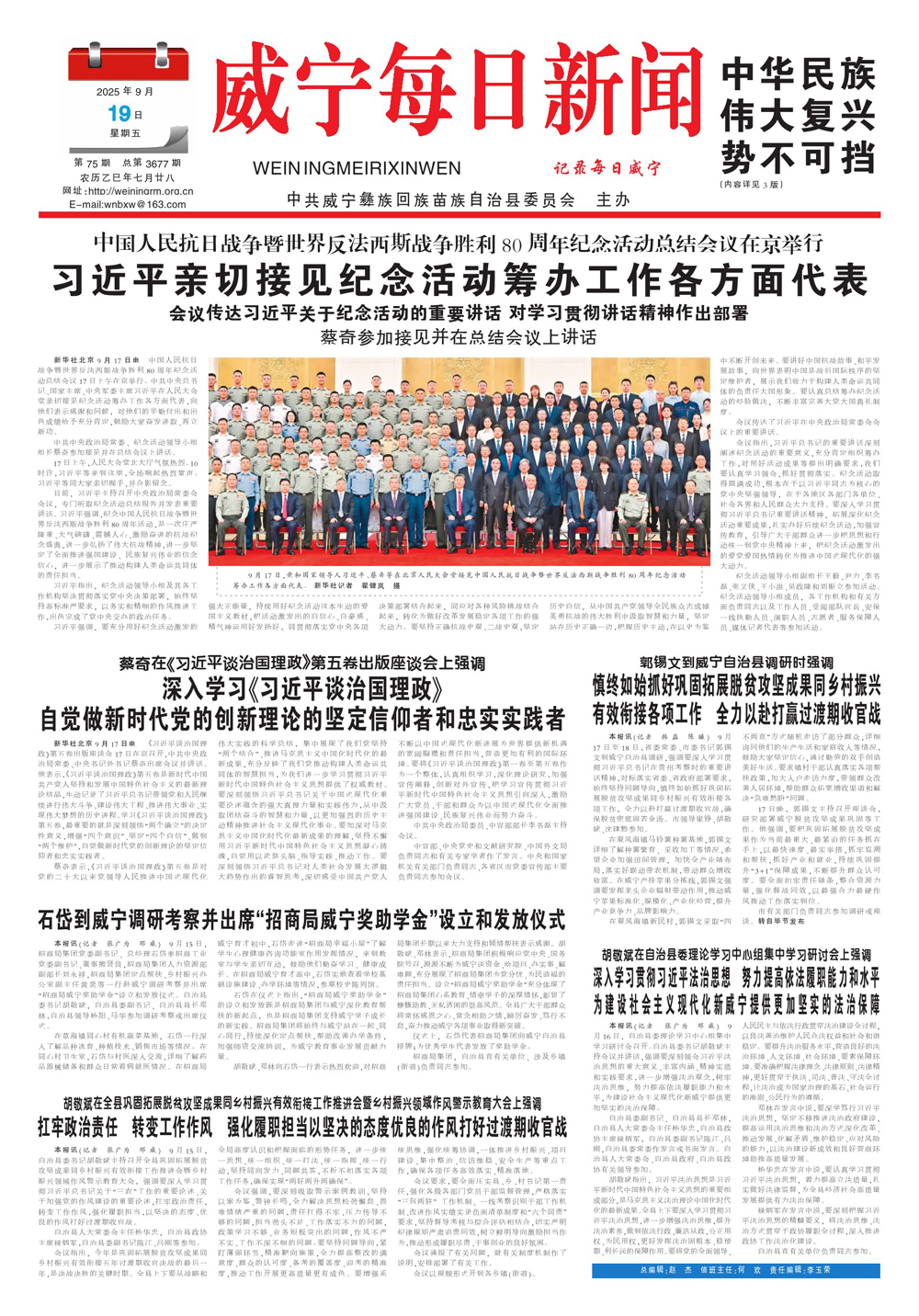 2025年9月19日威宁每日新闻
