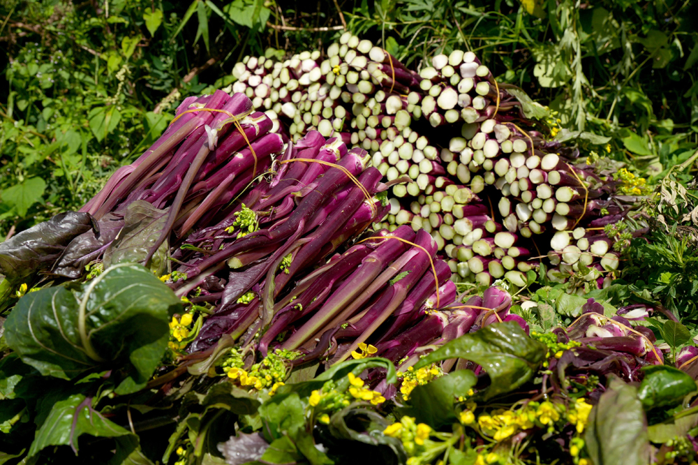 新鲜采摘的红菜薹