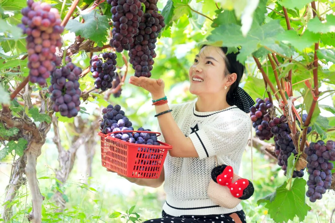 “黑美人”葡萄以其独特的深紫色果皮和饱满多汁的果肉著称,轻轻一咬,清甜的汁水便溢满口腔。每到午后,游园的人络绎不绝,孩子踮起脚尖寻找最饱满的果串,闺蜜情侣更是结伴而至。