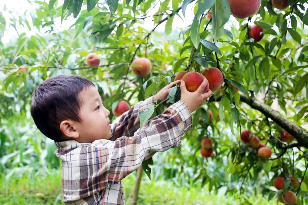 小朋友正在采摘桃子