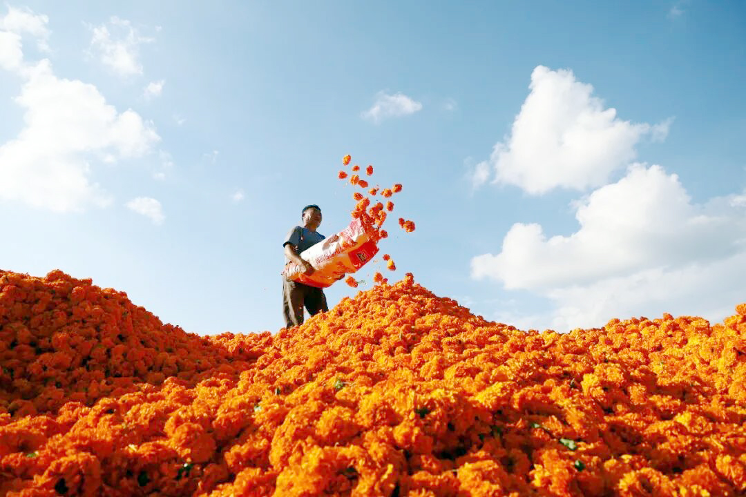 草海镇郑家营村种植的万寿菊(记者 罗喜贵 摄)