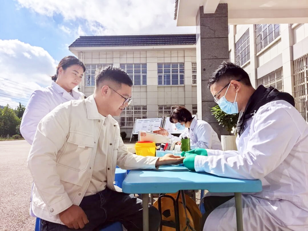 活动开始,医院党政班子成员率先垂范,带头挽起衣袖参与献血。献血的医护人员中既有连续多年参与的“献血模范”,也有初次加入的“热血新人”。大家在威宁自治县中心血站工作人员引导下,有序完成健康征询、填表登记、血压测量及血液初筛等流程,最终登上献血车,让承载着生命希望的血液缓缓流入血袋。