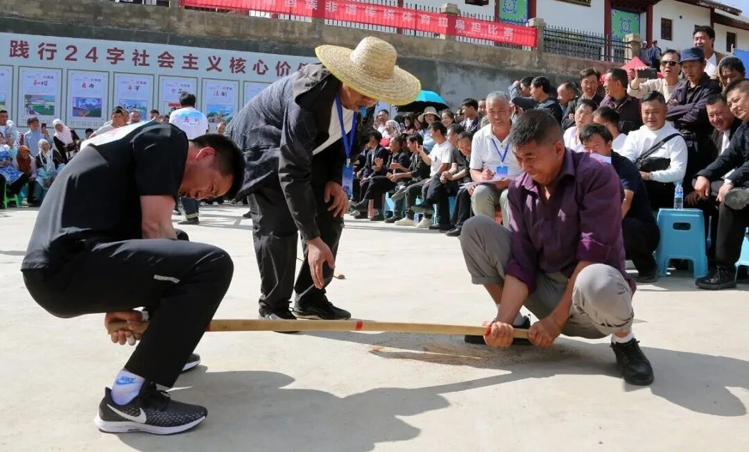 活动尾声,开展了非遗传统体育项目——“扭扁担” 比赛,将现场气氛推向高潮。参赛选手中,既有经验丰富的农家“老把式”,也有初次尝试的各族青年。随着哨声响起,选手们紧握扁担、凝神发力,观众们的呐喊助威声此起彼伏。这场充满趣味与力量的比赛,不仅展现了体育项目的活力,更让各族群众在竞技与欢笑中加深了情谊。