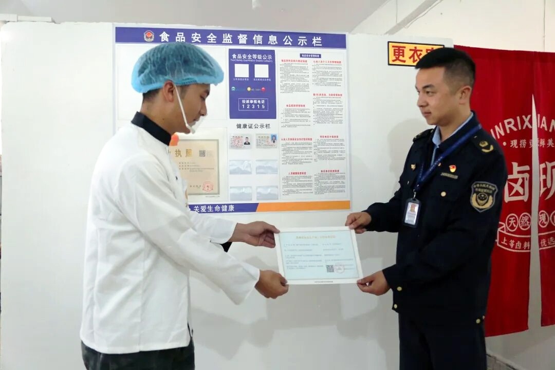 10月13日下午,在威宁六桥街道的“草海卤炸坊”店内,老板张文杰接过市场监管局一分局副局长马驰送来的《贵州省食品生产加工小作坊登记证》,脸上露出了笑容。