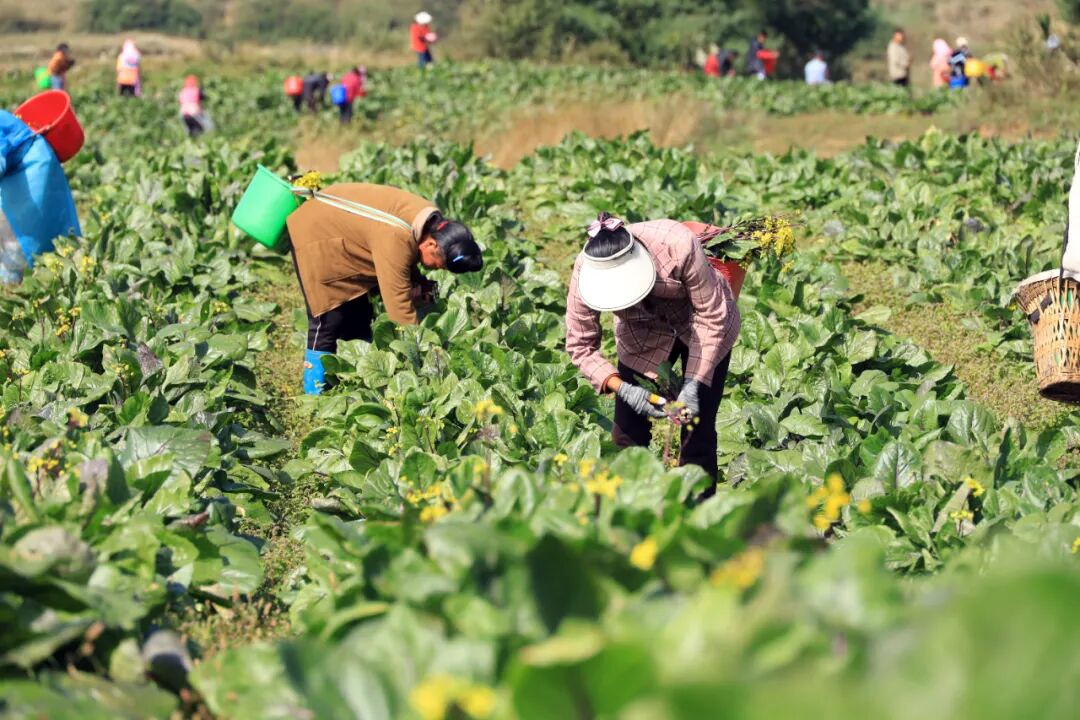 合作社规模化种植红菜苔,不仅释放出蓬勃的产业活力,还在当地百姓家门口铺就了增收路。基地每天吸纳130多名周边群众就近就业,整季红菜苔从种植到采收,务工支出超过一百万元。同时,每亩300元的土地流转费,也进一步拓宽了百姓的增收渠道。