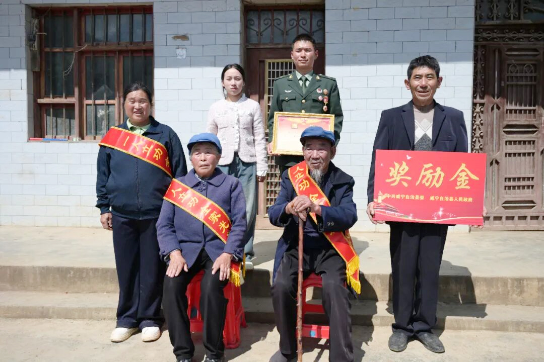 送喜报的队伍手捧喜报,来到草海镇石龙村陈亚的家门口。“恭喜你荣立三等功,这是新的起点,希望你在新的征程中,继续发扬威宁‘高原兵’的优良传统,把威宁‘高原兵’的品牌打得更亮更响,再接再厉,再攀高峰,斩获新功,为家乡争光添彩。”?威宁“高原兵”立功群体祝福陈亚道。