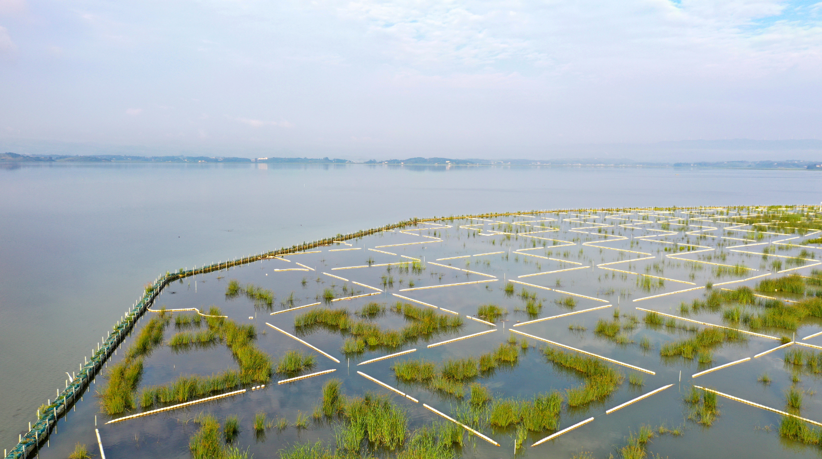 近年来,威宁自治县持续在草海国家级自然保护区实施水生植被恢复、防浪等工程,经过持续生态治理,草海水生植被覆盖度从2021年的9%跃升至2025年的66%,绘就了一幅人与自然和谐共生的美丽画卷。(记者 岳刚 摄)