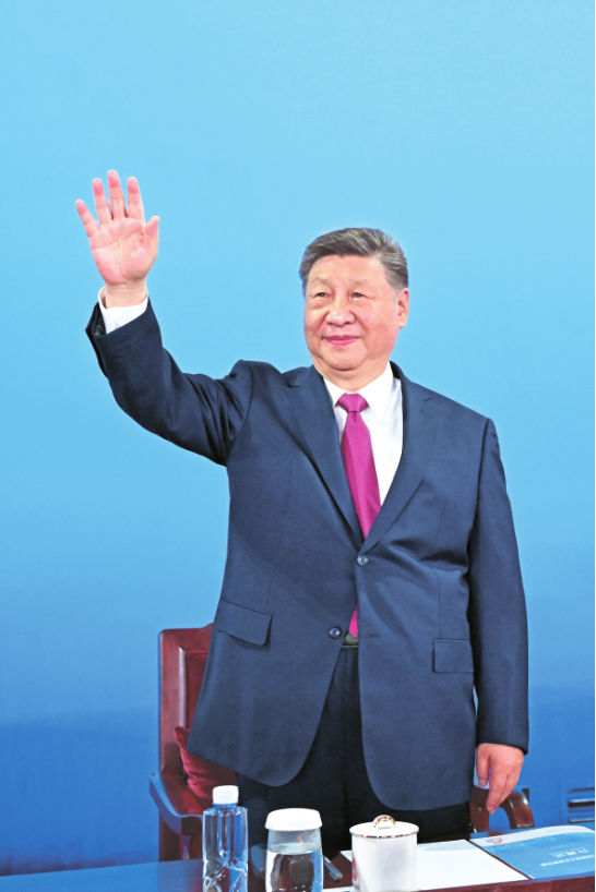 11月9日晚,中共中央总书记、国家主席、中央军委主席习近平在广东省广州市出席中华人民共和国第十五届运动会开幕式并宣布运动会开幕。这是习近平在主席台上向大家挥手致意。 新华社记者 燕雁 摄