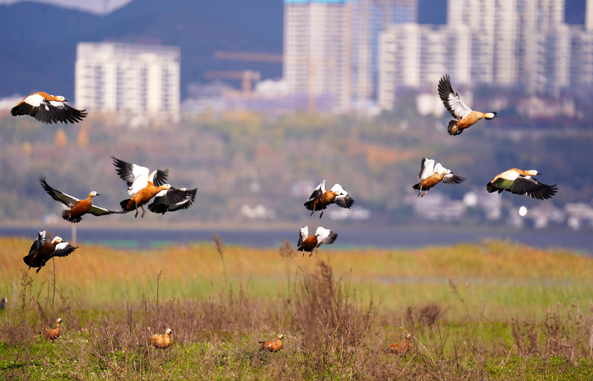草海迎来今年首批越冬候鸟。岳刚 摄(影像贵州)