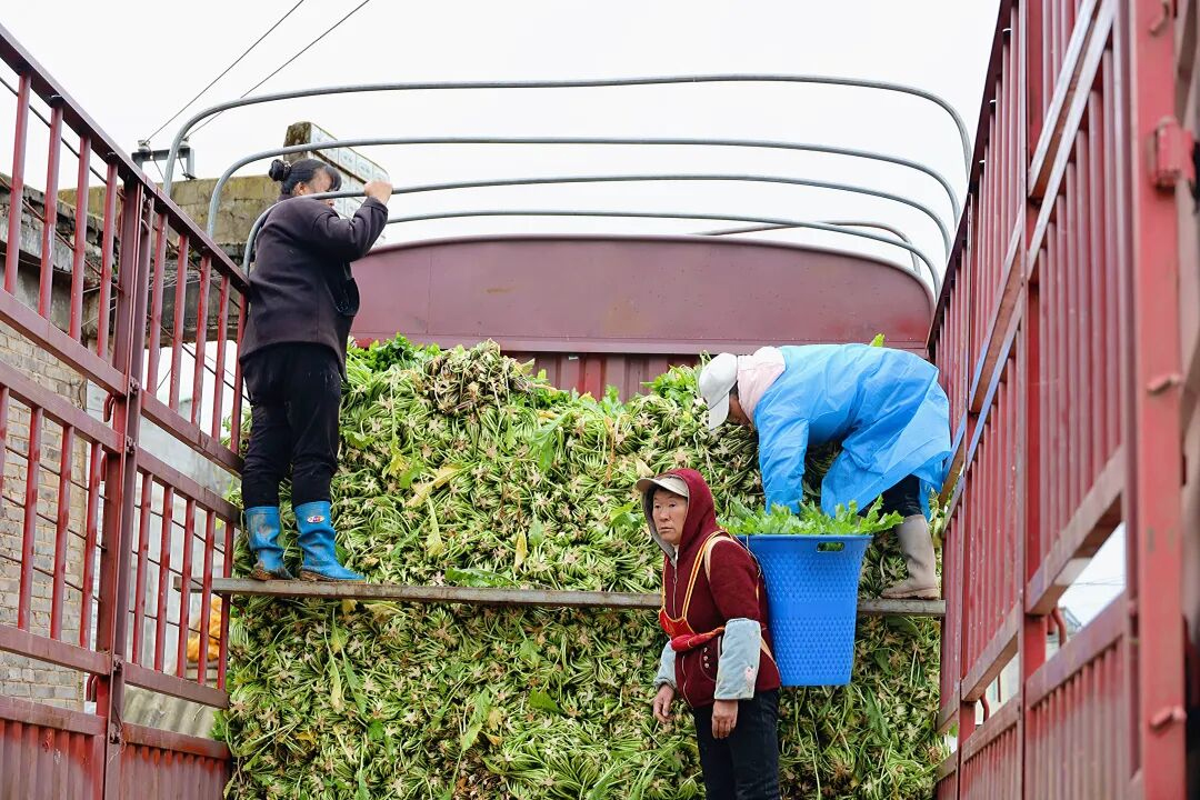 市场上雪里蕻供不应求,基地里务工群众干劲十足。基地里,每天都有50余人务工。在集中装车点,基地管理人员卯升粉正盯着雪里蕻装车,准备发往各地市场。“我主要是负责工人管理和分工,工钱是200元一天,一年四季都有活做。”卯升粉高兴地说。