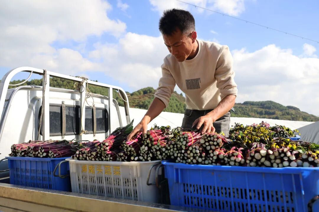 为啥凉山社区的冬天能这么“忙”?凉山社区党支部书记马跃给出了答案。“正因为凉山社区海拔高、光照足,且昼夜温差大,这里成了种植高山冷凉蔬菜的理想之地,一年四季皆可耕种,几乎没有土地闲置。”马跃说,今年社区共种植蔬菜2000余亩,除了眼下采收的红菜苔,还有白萝卜、大白菜、莲花白等品种。“不同品种错峰种植、错峰采收,既能保障市场供应,又能让居民们持续有活干。现在每天平均能带动300多人次务工,以前不少居民得外出打工,现在在家门口就能挣钱,还能照顾家庭,大家都愿意留下来了。