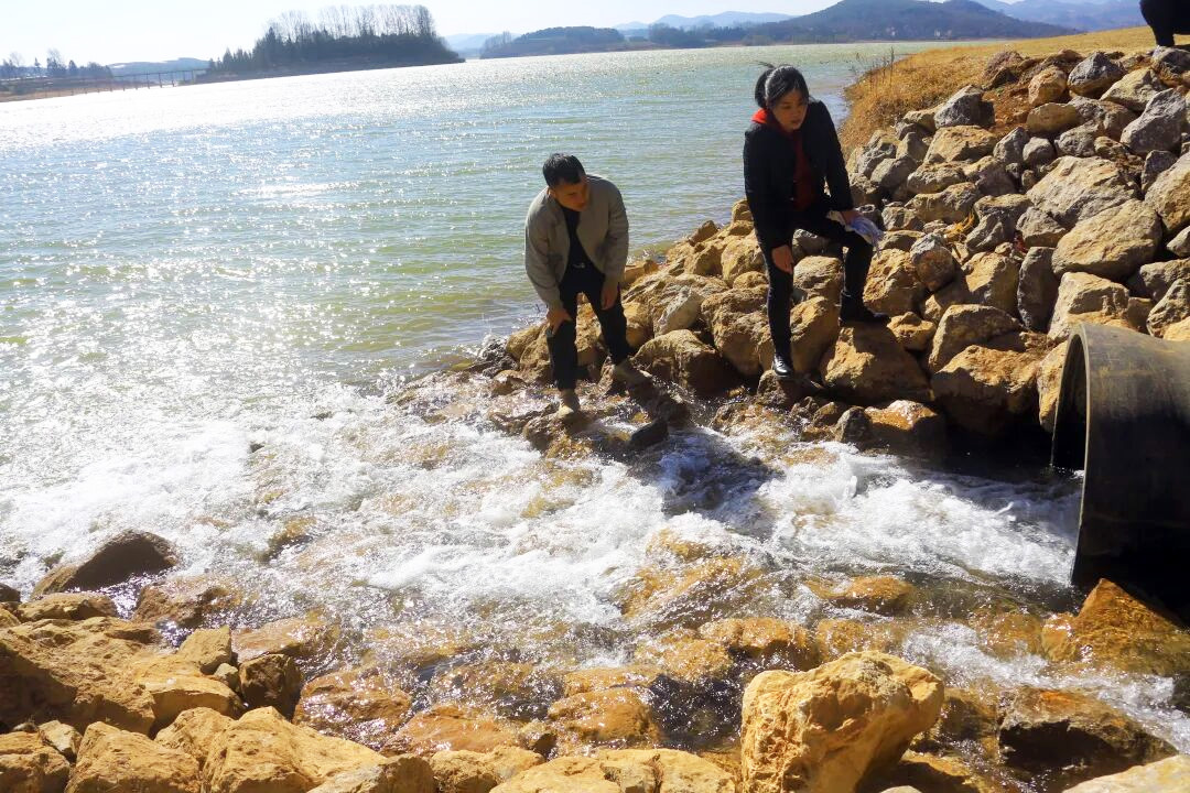 威宁自治县水务局工作人员在杨湾桥水库查看洛泽河提水工程