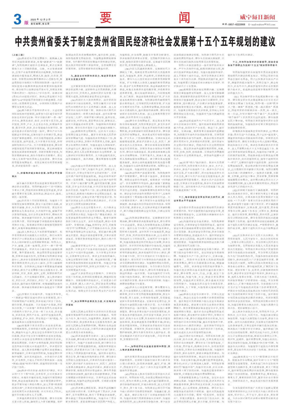 中共贵州省委关于制定贵州省国民经济和社会发展第十五个五年规划的建议