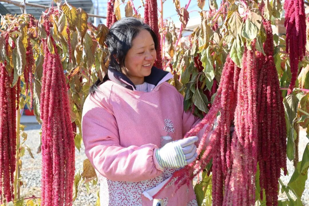 初冬时节,牛棚镇水源村的凤尾种植基地里,一串串形似麻花辫的凤尾穗沉甸甸地缀满枝头,厂房前的工人们熟练地将刚采收的凤尾穗送入机器,隆隆声中,一粒粒饱满的苋米顺着出料口滚落盆里,空气中弥漫着淡淡的谷物清香。