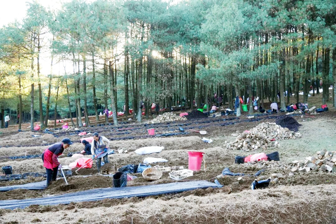 在威宁自治县国有沙子坡林场内,天麻固定菌床培育工作如火如荼。