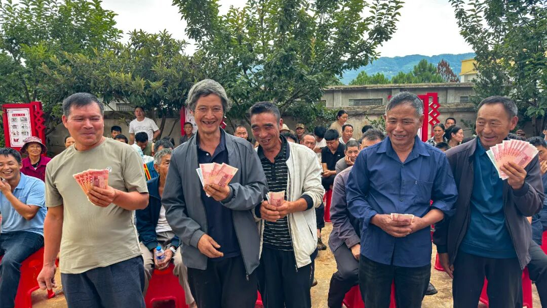 威宁县麻乍启顺种养殖专业合作社社员领取到首笔分红资金(文旭 摄)